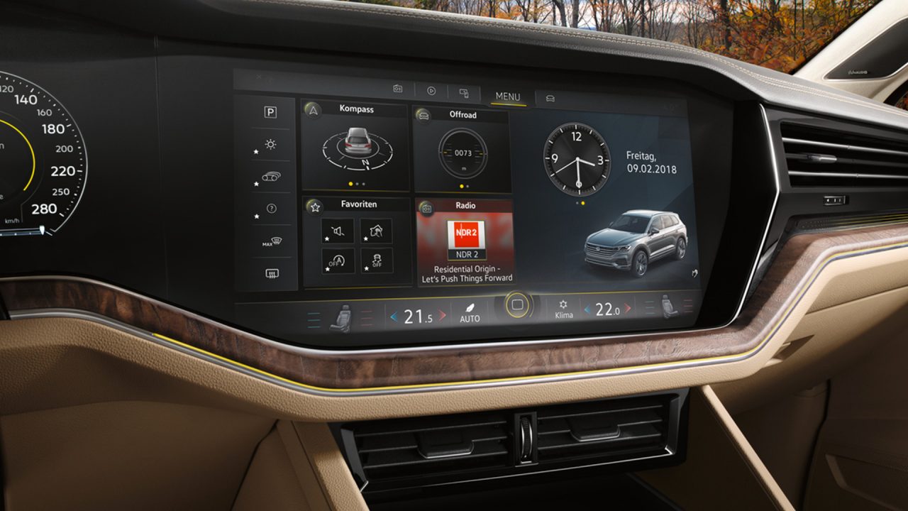 With digital tablets and other increasingly powerful and sophisticated computers, car dashboards need to be upbeat in terms of performance and fluidity of use. This is perfectly the case of the Innovision Cockpit of the New Touareg, a true digital brain for your car.